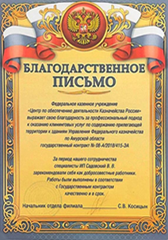 Тип договора: Ежедневная комплексная уборка внутренней и внешней территории, выполнение специализированных работ, снабжение расходными материалами, мойка оконных остеклений и фасадов.